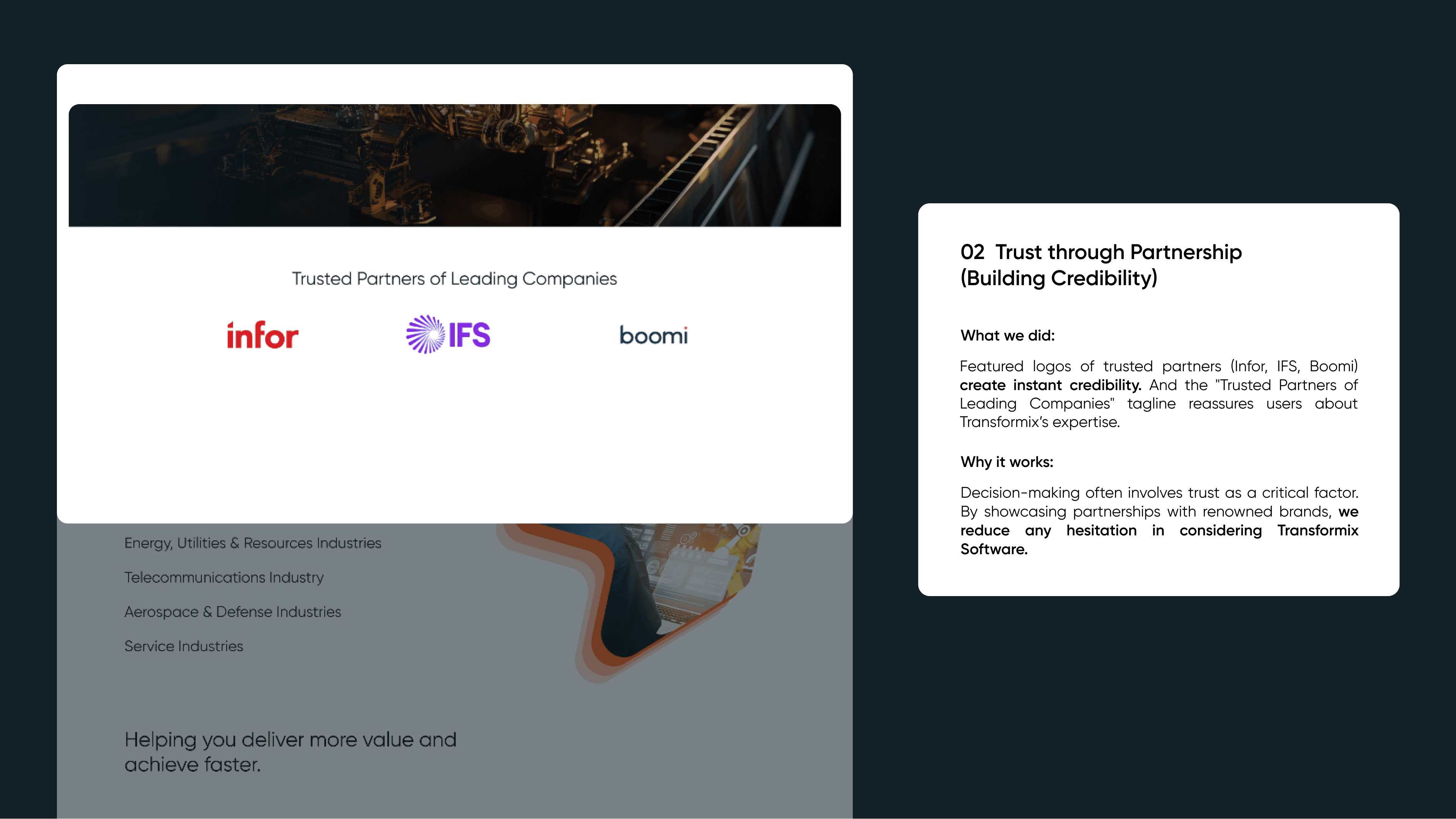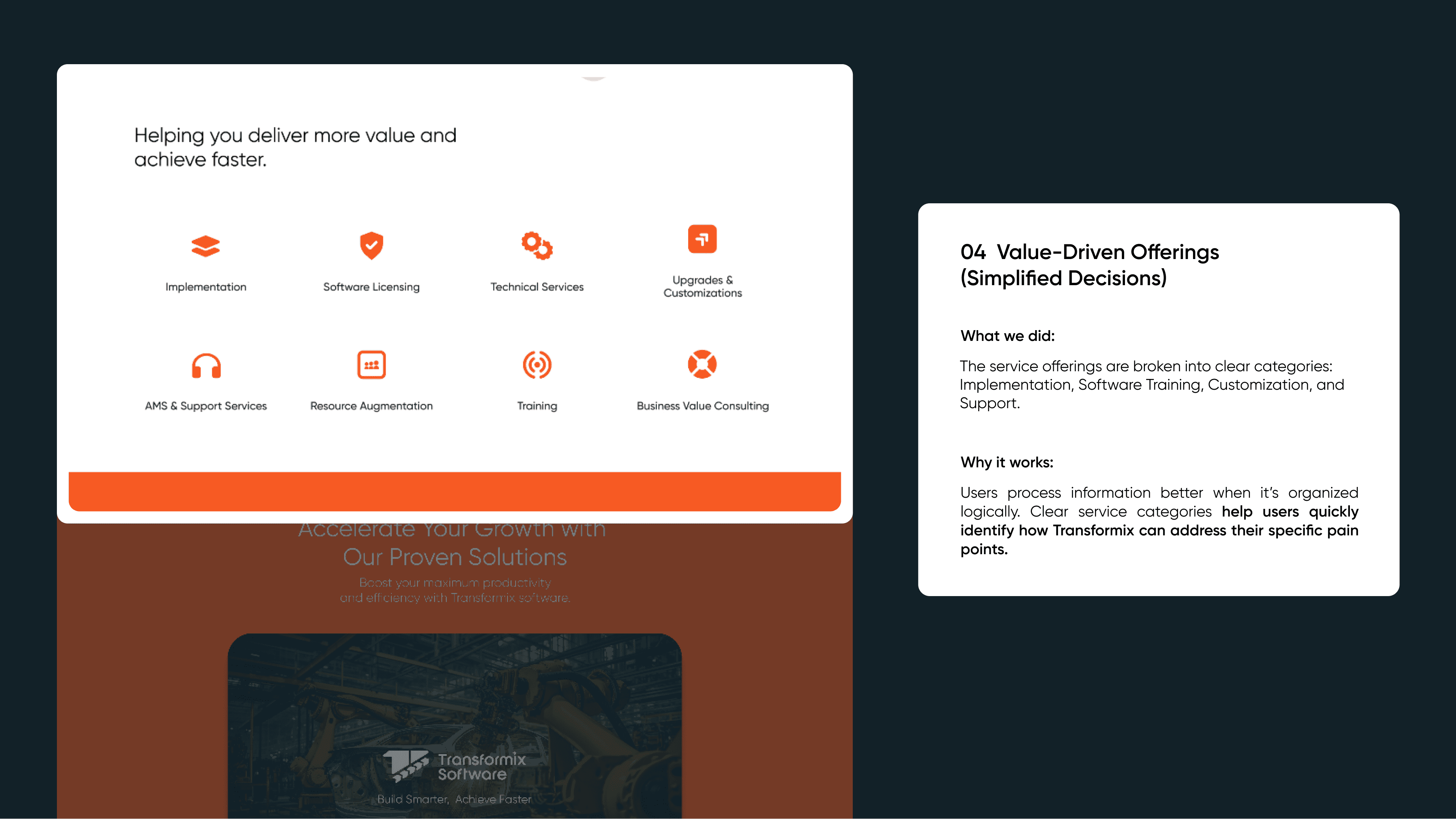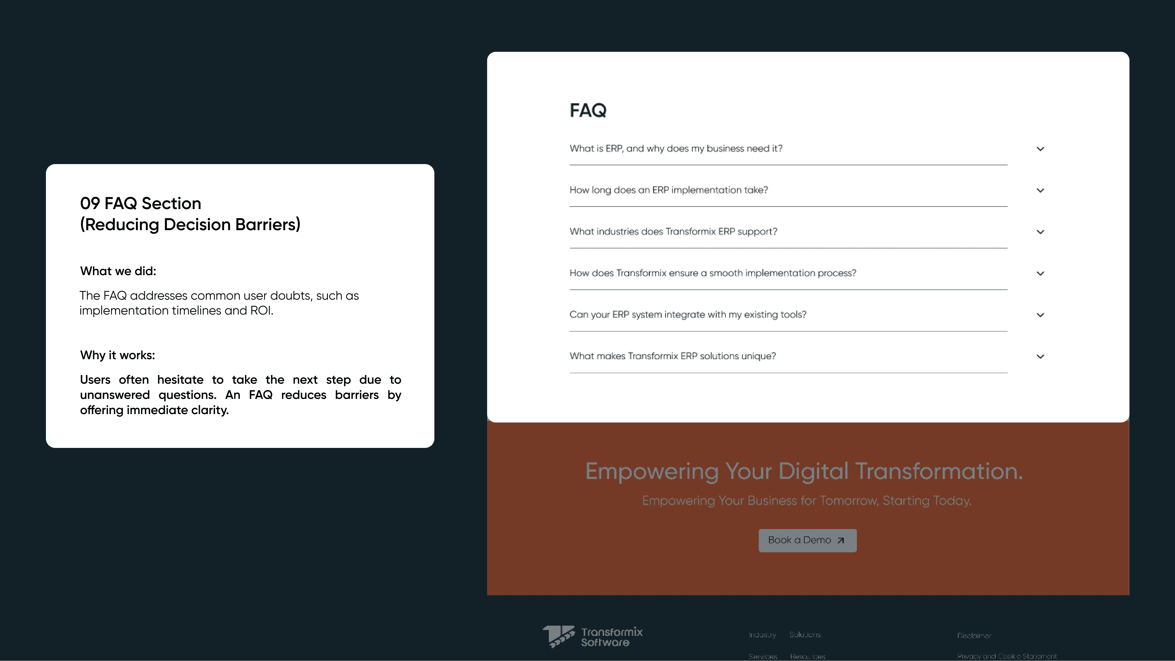 To establish Transformix Software as a leading player in the ERP software implementation space, the new brand identity is crafted with a strong focus on user experience, psychology, and future-ready positioning.